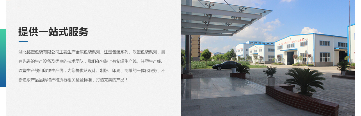 湖北銘塑包裝有限公司一家集研發(fā)、生產(chǎn)、銷售于一體的較優(yōu)秀民營企業(yè),技術(shù)力量雄厚,產(chǎn)品質(zhì)量可靠。位于交通暢順,百業(yè)興旺、經(jīng)濟(jì)富裕、政策開放的孝感開發(fā)區(qū)域。我們企業(yè)的營銷戰(zhàn)略是以建筑為土壤,以產(chǎn)品為種子,以質(zhì)量為肥料,讓綠色鋪滿全球。憑借多年來的行業(yè)經(jīng)驗(yàn),公司不斷進(jìn)行創(chuàng)新和研發(fā),為市場提供更廣泛的產(chǎn)品應(yīng)用領(lǐng)域和更好環(huán)保節(jié)能產(chǎn)品,為國家能源環(huán)保戰(zhàn)略和可持續(xù)發(fā)展戰(zhàn)略作出應(yīng)有的貢獻(xiàn)。     湖北銘塑包裝有限公司主要生產(chǎn)金屬包裝系列、注塑包裝系列、吹塑包裝系列,具有先進(jìn)的生產(chǎn)設(shè)備及優(yōu)良的技術(shù)團(tuán)隊(duì),我們?cè)诎b上有制罐生產(chǎn)線、注塑生產(chǎn)線、吹塑生產(chǎn)線和印鐵生產(chǎn)線,為您提供從設(shè)計(jì)、制版、印刷、制罐的一體化服務(wù),不斷追求產(chǎn)品品質(zhì)和嚴(yán)格執(zhí)行相關(guān)檢驗(yàn)標(biāo)準(zhǔn),打造更好的產(chǎn)品!